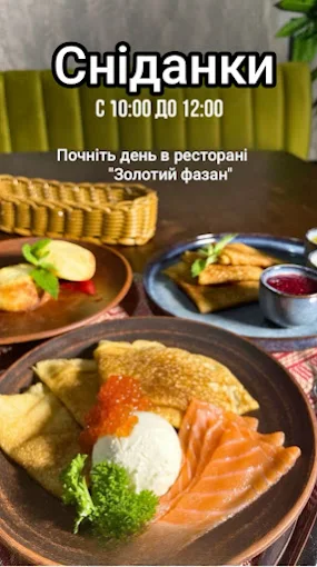 У ресторані готелю «Золотий фазан» гостям запропонують страви європейської, а також української кухні. За бажанням страви можуть подати на терасі.