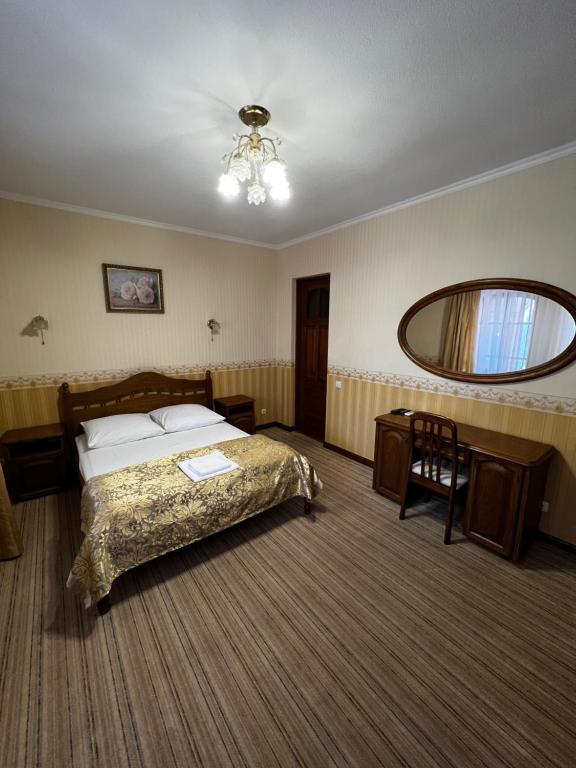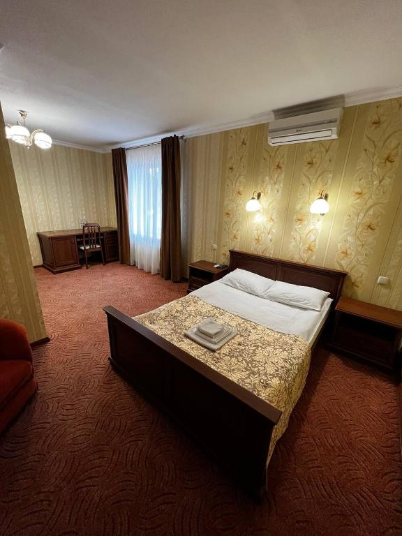 Гості можуть насолоджуватися затишною атмосферою номерів, оформлених у теплих тонах і обставлених класичними меблями.